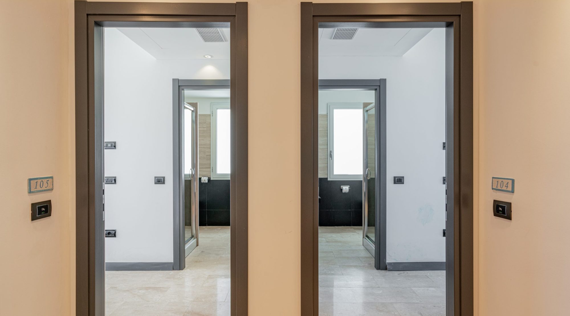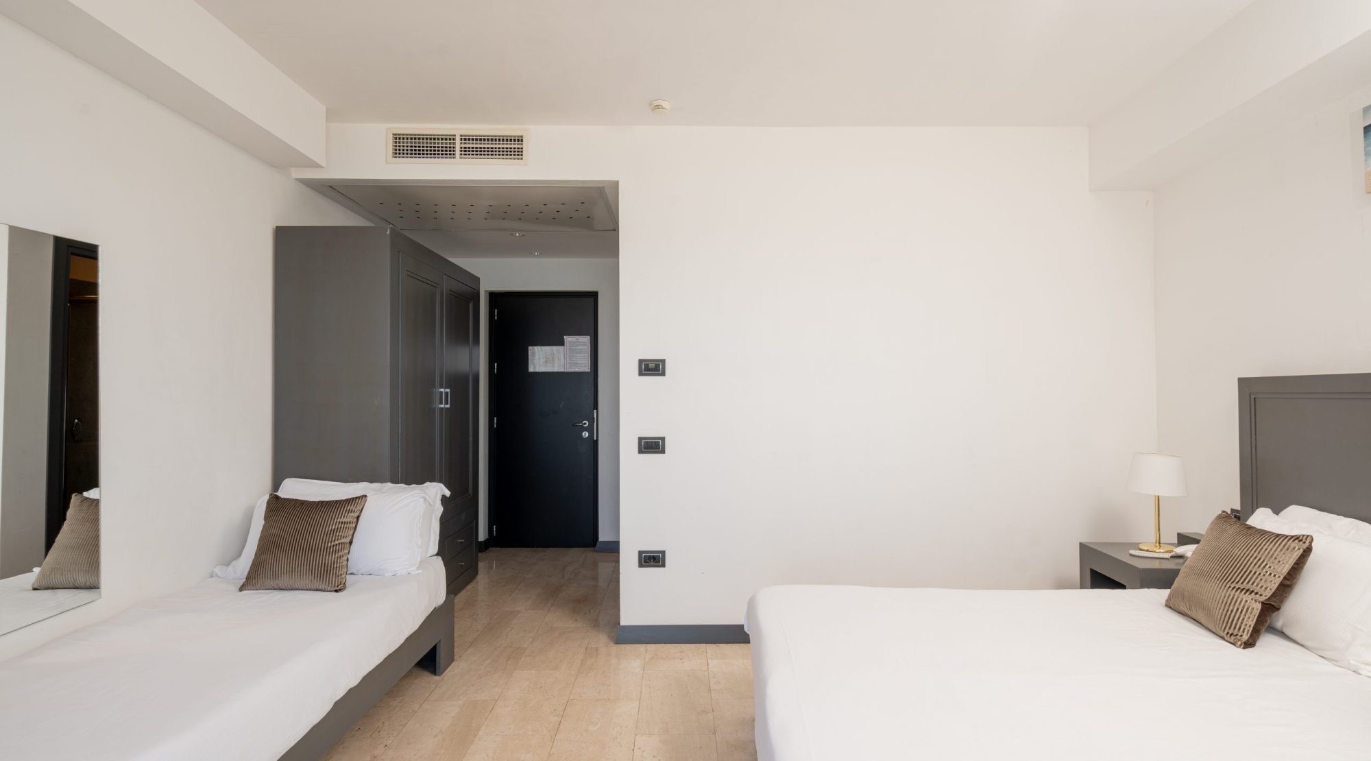 5 tipologie di camera che possono essere doppie (15 mq), doppie con un letto aggiunto (17 mq), doppie 1 letto a castello aggiunto (20 mq circa) quadruple ( circa 23 mq) e comunicanti( 2 camere doppie).